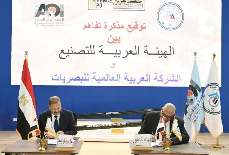وقعت الهيئة العربية للتصنيع مذكرة تفاهم مع الشركة العربية العالمية للبصريات ، ويأتى التوقيع على هامش إنعقاد مؤتمر الدفاع ايديكس 2025 .