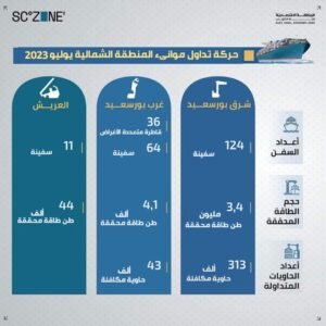 هذا وقد استقبل ميناء غرب بورسعيد التابع للمنطقة عدد 45 سفينة حاويات بطاقة محققة 401,570 طن وعدد حاويات 42,814 حاوية مكافئة، كما استقبل الميناء 5 سفن بضائع عامة، وعدد 8 سفن صب سائل، وسفينة رورو وسفينتين سياحيتين و3 سفن تحولت ساحلي فضلًا عن استقبال عدد 36 قاطرة متعددة الأغراض خلال ذات الشهر.