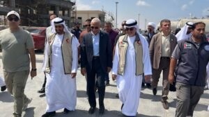 وثمن اللواء خالد مجاور محافظ شمال سيناء دور دولة الإمارات في دعم الأشقاء الفلسطينين والدعم المتواصل من خلال وصول سفن المساعدات الإغاثية وشاحنات المساعدات التي تعبر من خلال معبر رفح البري.