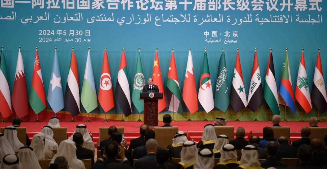 وأكد الرئيس السيسي على إن الانعقاد الدوري المنتظم للمنتدى العربي الصيني.. يحمل دلالة واضحة على الحرص المتبادل.. على تعزيز العلاقات المؤسسية “العربية – الصينية”.. حيث يهدف المنتدى.. إلى تحقيق عدد من الأهداف السياسية والاقتصادية الرئيسية.. منها تعزيز التعاون “جنوب / جنوب”.. وتشكيل نظام عالمي أكثر عدالة .. مع العمل على تعزيز أوجه التعاون الفني المشترك.. في مواجهة التحديات المرتبطة.. بحوكمة الاقتصاد العالمي.. ونقل وتوطين التكنولوجيا.. إلى جانب مكافحة التغير المناخى.. وضمان الأمن المائي.. وذلك ضمن قائمة مطولة من التحديات والأخطار.. التي تفرض ضرورة حشد قدرات التعاون.. بين مختلف الأصدقاء بالمجتمع الدولى.