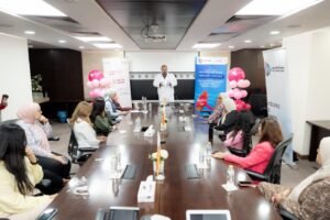 وفي إطار المبادرة الخاصة بالكشف المبكر عن سرطان الثدي، تم تعريف الموظفات بطريقة الحصول على الباركود المُخصص لإجراء الفحص المجاني في مستشفى السلام الدولي لهن ولأسرهن.