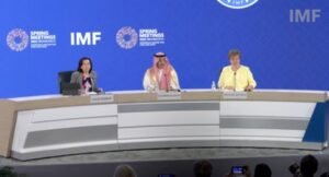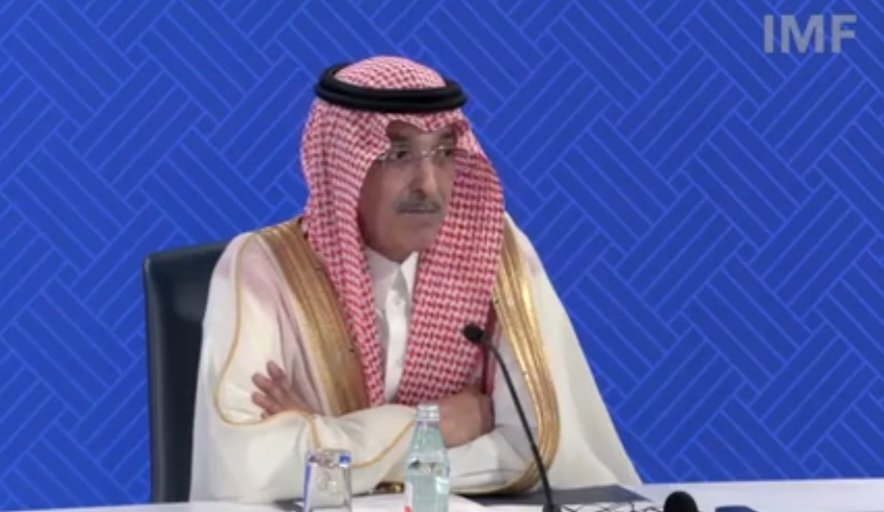 أعلن محمد الجدعان وزير المالية السعودي بيان رئيس الاجتماع الثالث والخمسين للجنة الدولية للشؤون النقدية والمالية فى المؤتمر الصحفي الذى عقد اليوم بحضور كريستالينا جورجييفا المديرة العامة لصندوق النقد الدولي.