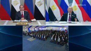 ألقى  الرئيس الروسي فلاديمير بوتين كلمة خلال مراسم تركيب وعاء ضغط المفاعل للوحدة الأولى لمحطة الضبعة للطاقة النووية في صيغة مؤتمر الفيدية في 19 نوفمبر 2025