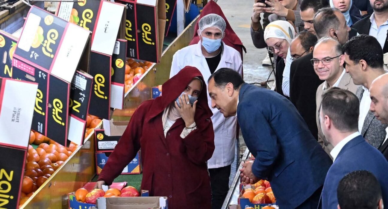 تفقد الدكتور مصطفى مدبولي، رئيس مجلس الوزراء، ومرافقوه، محطة الصواف لتعبئة الموالح والحاصلات الزراعية، وذلك خلال جولته التفقدية التي يقوم بها اليوم بعدد من الشركات الصناعية بالمنطقة الاستثمارية بمدينة بنها، بمحافظة القليوبية.