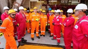 والتقي الوزير مع فريق العمل المسؤول عن إدارة العمليات علي الحفار ، مثمنًا الجهود المبذولة لرفع كفاءة التشغيل.