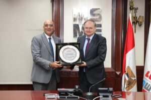 وقام باسل رحمي، بتسليم السفير كريستيان برجر سفير الاتحاد الأوروبي في مصر درعا تعبيرا عن تقدير الجهاز لجهوده وحرصه على لعب دور فعال وكبير طوال فترة تمثيله للاتحاد الأوروبي في مصر، لتيسير تنفيذ البرامج التنموية ذات الأهداف المشتركة في دعم مجال المشروعات الصغيرة.