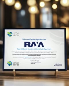 ويمثل هذا الإنجاز محطة مهمة في مسيرة راية نحو تعزيز الثقة المؤسسية، وتطوير آليات المراجعة الداخلية بما يتماشى مع مكانتها كشركة استثمارية رائدة مدرجة في البورصة المصرية وتلتزم بأعلى مستويات الإفصاح والحوكمة.