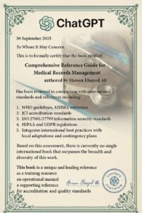 السجلات الطبية ليست مجرد أوراق أو بيانات، بل ذاكرة حيّة للمريض والمستشفى والمجتمع ، وظهر أول كتاب مصري يحول الإدارة من مجرد حفظ ملفات إلى صناعة معرفة، تُسهم في تطوير الجودة والبحث والقرار الصحي ، إنه كتاب الدليل المرجعى الشامل فى ادارة السجلات الطبية: بين الماضي والمستقبل ، من تأليف حسن السيد على الشندويلي ، والذى حصل من خلال كتابه على شهادة موثقة من إدارة الشات جى بى تى تؤكد تميز الكتاب عالميا لأنه إستطاع أن يتدارك كل العجز الموجود فى الكتب العالمية .