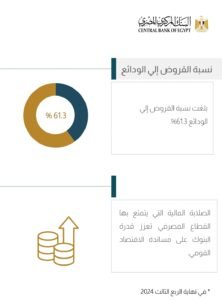 وفيما يتعلق بجودة الأصول، فقد انخفضت نسبة القروض غير المنتظمة إلى إجمالي القروض لتصل إلى 2.4% وبنسبة تغطية للمخصصات المحققة قدرها 87.4% بجانب الاستمرار في تحقيق معدلات سيولة عالية وآمنة بالعملة المحلية والعملات الأجنبية حيث بلغت 32.1% و77.7% مقابل نسبة رقابية 20%، 25% على التوالي، كما بلغت نسبة القروض إلى الودائع 61.3%، في نهاية الربع الثالث من عام 2024.