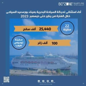 أعلن المكتب الاعلامى للمنطقة الإقتصادية لقناة السويس فى بيان صادر اليوم أن ميناء بورسعيد السياحي التابع للمنطقة الاقتصادية لقناة السويس حقق أرقاما” قياسية لحركة السياحة البحرية وزيادة كبيرة في عدد الزوار على التوالي في الموسم السياحي من العام الماضى 2023