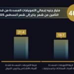 وبلغت إجمالي قيمة التعويضات المسددة من قطاع التأمين 401 مليار جنيه بين شهري يناير وحتى أغسطس لعام 2025، حيث بلغت قيمة التعويضات المسددة لتأمينات الممتلكات والمسئوليات 18.7 مليار جنيه، فيما سجلت قيمة التعويضات المسددة للأشخاص وتكوين الأموال 21.4 مليار جنيه.الجدير بالذكر أن: تأمينات الممتلكات والمسئوليات يقصد بها التأمين على الممتلكات ضد الأخطار، مثل الحريق أو السرقة والتأمين على المنازل والسيارات والمخازن والبضائع وغيرها من الأصول.