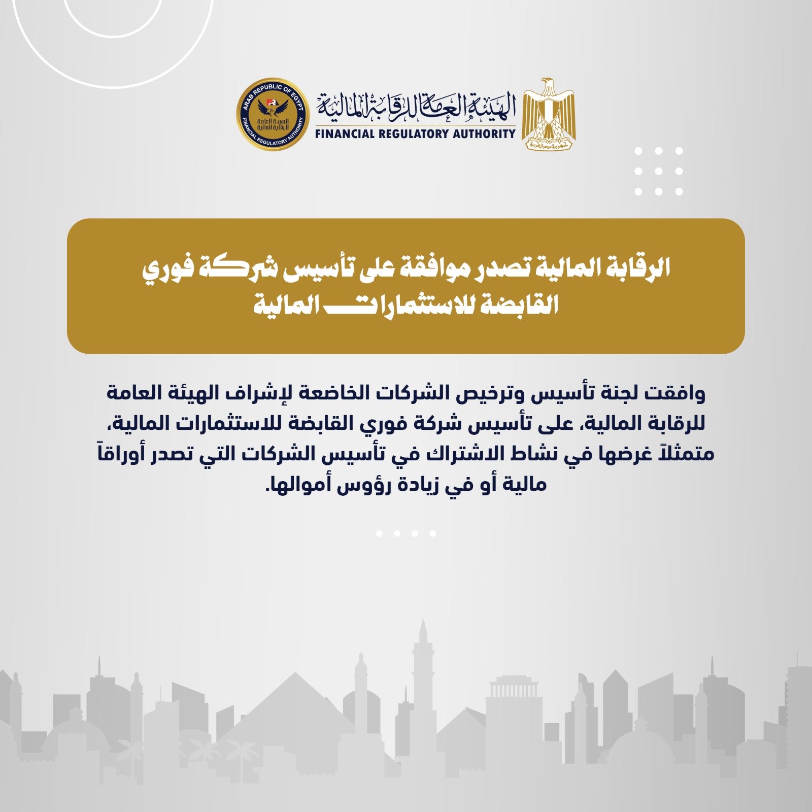 وتعد لجنة تأسيس وترخيص الشركات الخاضعة لإشراف الهيئة العامة للرقابة المالية وفروعها، هي المعنية وفقاً لقرار رئيس الهيئة رقم 3060 لسنة 2023، بالموافقة على تأسيس الشركات العاملة في مجال الأنشطة المالية غير المصرفية الخاضعة لإشراف ورقابة الهيئة، والترخيص لها بمزاولة النشاط.
