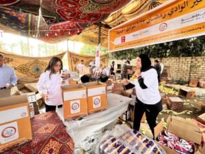 وقالت: حرصنا هذا العام أيضاً على إطلاق قافلة مخصصة لأهالينا بمحافظة الوادى الجديد لتقديم مساعدات غذائية ومشروعات تمكين إقتصادي من خلال توفير ماكينات خياطة، وبضاعة للأكشاك، وأدوات و معدات زراعية.
