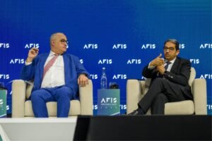 تحت عنوان “من يسيطر حقا على تمويل التجارة في أفريقيا ؟ ولماذا لا تكون البنوك الأفريقية؟ أقيمت القمة المالية الأفريقية السنوية لهذا الأسبوع – AFIS في الدار البيضاء، بالمغرب، وشارك فى التدوة الرئيسية ،  هيثم المعايرجي، نائب الرئيس التنفيذي لأفريكسيم بنك، وتييري هبرود من بنك موريشيوس التجاري، ورباح رحماني من بنك زينيث الفرنسي، وشيريل بوس من عبسا الدولية، وكزافيير جوبارت من ماكينزى وشركاه ، وقام بإدارتها إيدن هاريس من فاينانشيال تايمز.