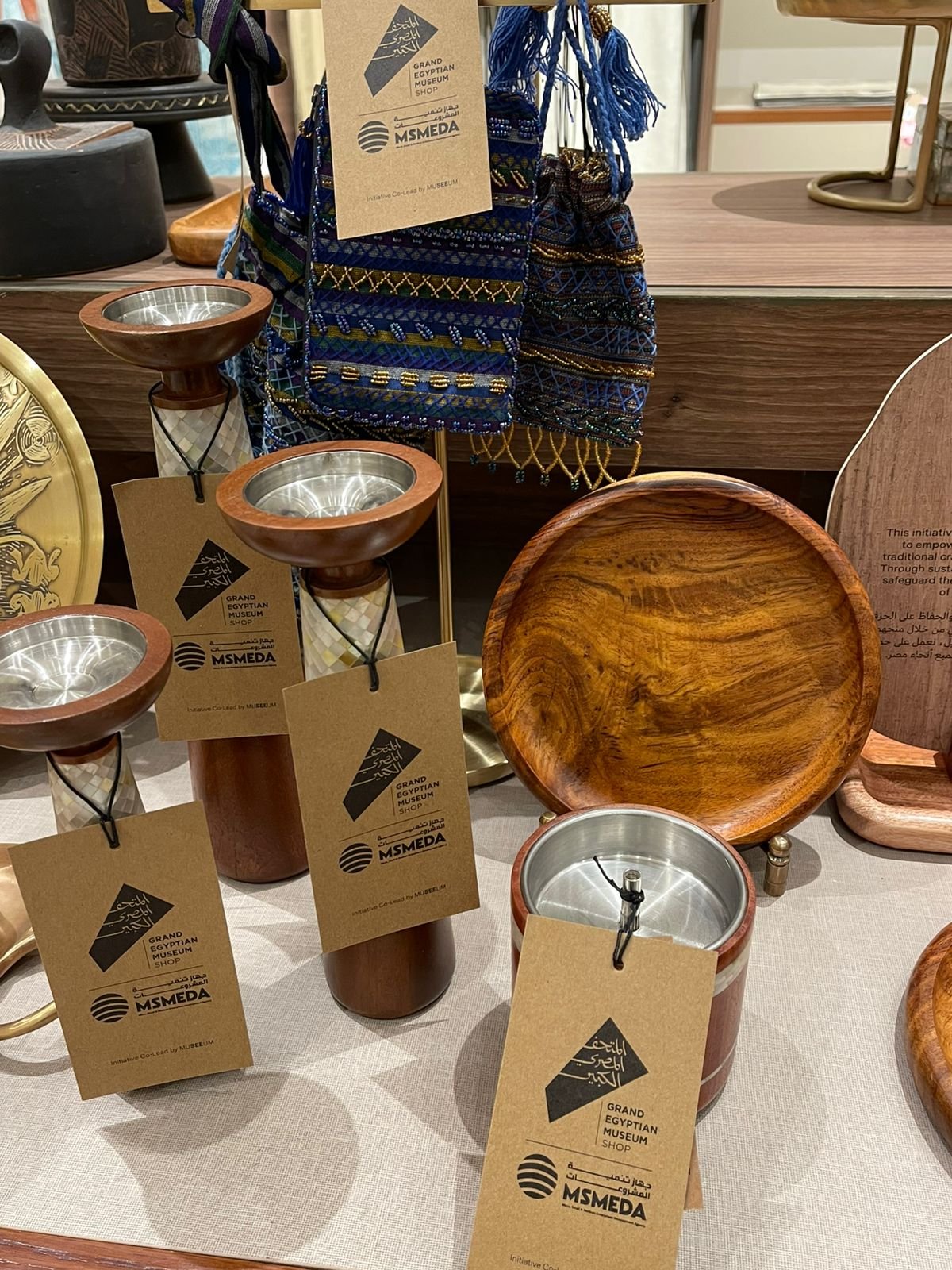 وصرح باسل رحمي، بأنه تزامنا مع فعاليات الاحتفال بالأفتتاح العالمي للمتحف المصري الكبير، قام الجهاز بالتعاون مع بيت الهدايا – المتجر الرسمي للمتحف المصري الكبير، بعرض مجموعة كبيرة و متميزة من المنتجات التراثية و الفنية الخاصة بالمبدعين والفنانين من عملاء الجهاز اصحاب المشروعات المتوسطة والصغيرة ضمن فاعليات تنفيذ استراتيجية تطوير الحرف التراثية التي اطلقها الدكتور مصطفي مدبولي رئيس الوزراء ورئيس مجلس ادارة جهاز تنمية المشروعات بهدف تطوير المنتجات التراثية و التسويق لها دوليا من خلال عرضها بالمتجر الرسمي للمتحف المصري الكبير والعديد من التجمعات السياحية بمختلف محافظات الجمهورية