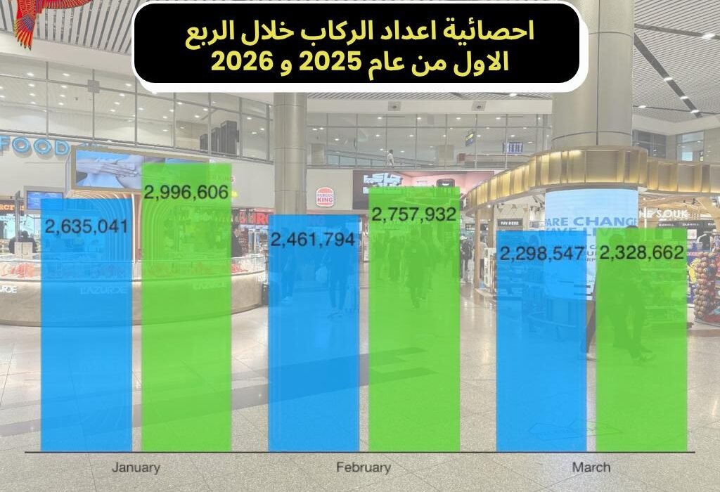 واصل مطار القاهرة الدولي تحقيق معدلات نمو إيجابية في حركة السفر خلال الربع الأول 2026 سواء في أعداد الركاب أو الرحلات الجوية مقارنةً بالفترة نفسها من عام 2025.