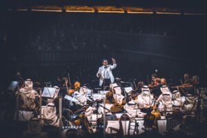 قدّم الأوركسترا السعودي مقطوعات موسيقية استثنائية برزت للعالم جمال التراث الثقافي والتنوع في تاريخ الموسيقى السعودية كما تألقت خلال تقديم أغنية “أغفر لعبد مذنب”وغيرها من الروائع الغنائية