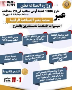 ويأتي هذا الطرح استمرارًا للنهج الذي تتبعه الوزارة في توفير الأراضي الصناعية بصفة منتظمة ربع سنوية، بما يضمن إتاحة فرص استثمارية مستدامة للمستثمرين الصناعيين في مختلف المحافظات، وهو ما يعكس التزام الدولة بتهيئة بيئة أعمال جاذبة ومحفزة للإنتاج والتصنيع المحلي لتحقيق التنمية الصناعية المستدامة، كما يأتي هذا الطرح مدعومًا بحزمة من التيسيرات غير المسبوقة التي اعتمدتها الوزارة في الطروحات السابقة واستمرت في الطرح الحالي، من بينها خفض تكلفة دراسة الطلب بنسبة 50%، وإلغاء مقابل تقديم العروض والضمان المالي،وخفض مقدم جدية الحجز إلى 10% فقط من قيمة الأرض فضلًا عن تبسيط نموذج دراسة الجدوى.