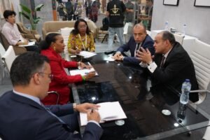عقد المهندس أحمد سمير وزير التجارة والصناعة سلسلة لقاءات مكثفة مع كل من ريبيكا ميانو وزيرة التجارة والصناعة والاستثمار الكينية وجين كريسيستومي وزير التجارة والصناعة الرواندي، و سليمان ديارا سوبا وزير التجارة والصناعة بساحل العاج، وذلك لبحث فرص تعزيز التعاون الاقتصادي بين مصر وهذه الدول، كما التقى الوزير كل من وامكيلي ميني سكرتير عام منطقة التجارة الحرة القارية والسفير ألبرت موتشانجا مفوض التجارة والصناعة بالاتحاد الافريقي الى جانب باميلا كوك المدير التنفيذي لمركز التجارة العالمي، وقد حضر اللقاءات الوزير مفوض تجاري يحيى الواثق بالله رئيس التمثيل التجاري.
