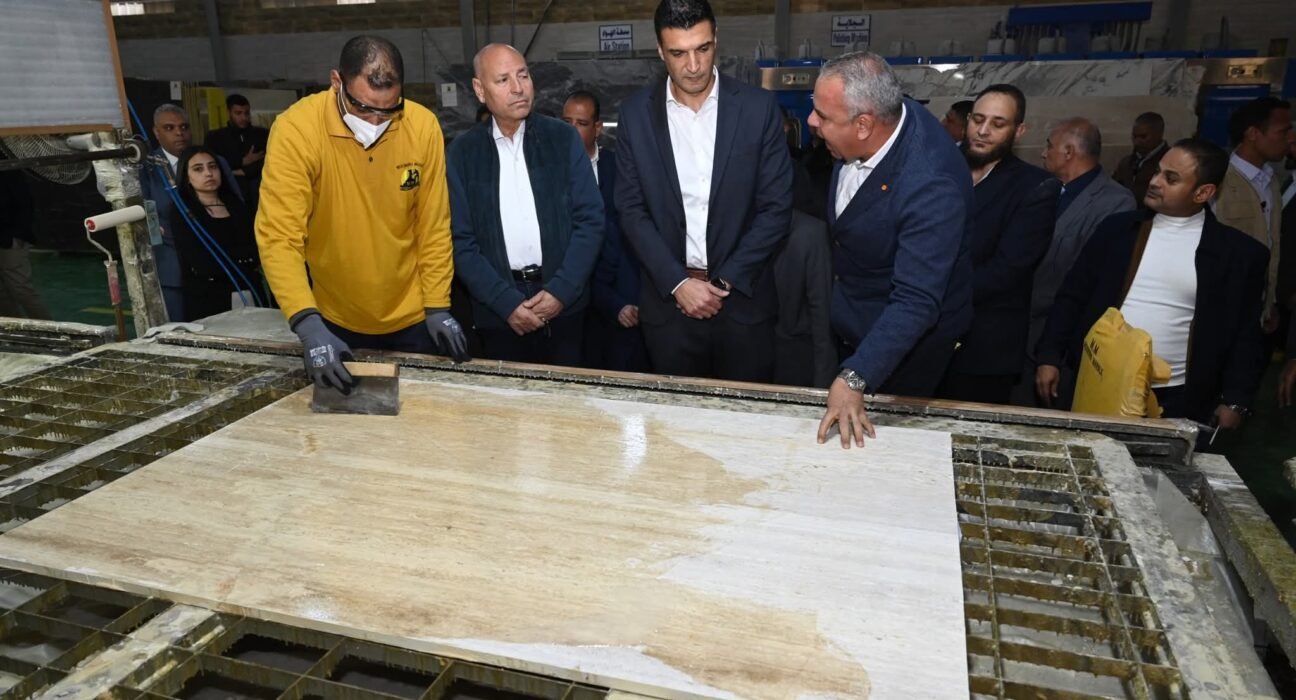 ثم تفقد الوزير مصنع شركة مودرن ماربل للرخام والجرانيت، المقام على مساحة 25 ألف متر مربع باستثمارات تبلغ 177 مليون جنيه، وتبلغ الطاقة الإنتاجية للمصنع 120 ألف متر مربع سنويًا، بنسبة مكون محلي 80.3%، فيما تُصدر الشركة نحو 85% من إنتاجها للأسواق الخارجية، وتوفر 500 فرصة عمل مباشرة وغير مباشرة، حيث شملت الجولة تفقد مصنع الطاولات المخصصة للتصدير، ومصنع الـCNC والأعمال الديكورية، إضافة إلى عنابر التصنيع وتجهيز الحاويات.