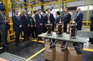 وبدأ الوزير جولته بتفقد مصنع شركة هيتاشي إنرجي للمحولات الكهربائية الجافة والزيتية والمقام على مساحة 26.2 ألف متر مربع وتبلغ الطاقة الإنتاجية للشركة 5 آلاف محول كهربائي سنويًا، ونسبة المكون المحلي 54%، وتصدر الشركة 40% من إنتاجها لأسواق 9 دول في إفريقيا ومنطقة الخليج العربي، وتوظف الشركة 240 موظفاً، وقد كان في استقبال الوزير بالمصنع المهندس محمد الحسيني، رئيس مجلس إدارة الشركة، وخلال الزيارة تفقد الوزير مراحل تصنيع المحولات والاختبارات الفنية.