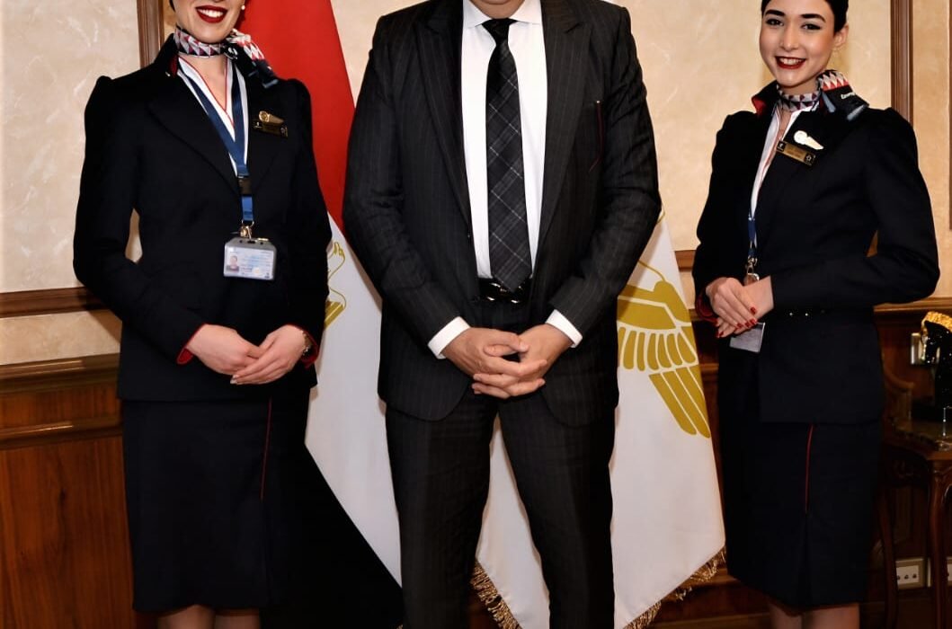 استقبل الدكتور سامح الحفنى وزير الطيران المدني بمقر ديوان عام الوزارة المضيفتين الجويتين ناريمان أبو بكر ، وسارة هيمن صالح من طاقم الضيافة الجوية بشركة مصر للطيران، وتم تكريمهن تقديرًا لتصرفهن الإنساني والمهني الراقي أثناء تعاملهما مع راكب على متن إحدى الرحلات الجوية، في موقف يعكس أعلى معايير الاحترافية المهنية والإنسانية في التعامل مع الركاب.