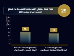 29 مليار جنيه إجمالي التعويضات المسددة من قطاع التأمين نهاية يونيو 2025