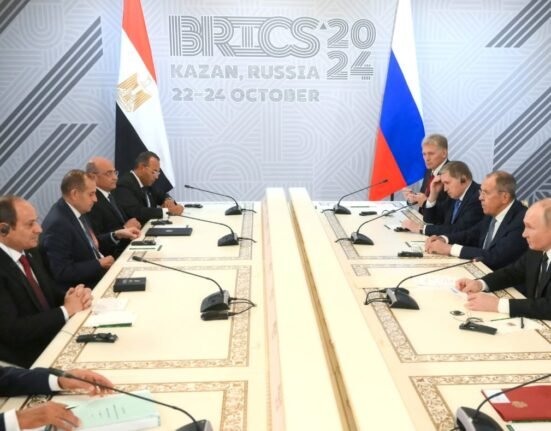 التقى الرئيس الروسي فلاديمير بوتين على هامش قمة البريكس بالرئيس المصري عبد الفتاح السيسي. وقال فلاديمير بوتين: نحن ممتنون لكم لمشاركتكم في قمة البريكس.