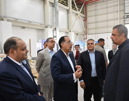 تفقُد د مصطفى مدبولي رئيس الوزراء مصنع شركة مابي الإيطالية بمدينة العبور ، المتخصص فى المواد الكيماوية اللاصقة . وقال أندريا بيريني، مدير