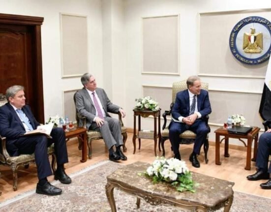 عقد المهندس طارق الملا وزير البترول والثروة المعدنية اجتماعا مع براد كرابترى مساعد وزيرة الطاقة الامريكية لإدارة الطاقة الأحفورية والكربون ، الذى يزور