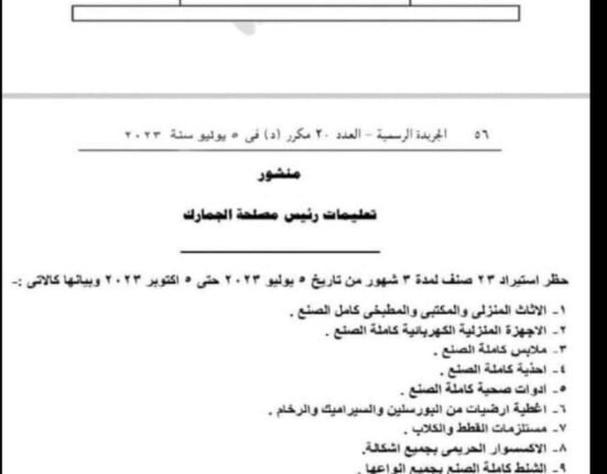 تداول عدد من رواد مواقع التواصل الاجتماعي ، منشور يشمل مستند يتضمن حظر استيراد 23 صنفا ومنتج كامل الصنع من الخارج، لمدة 3