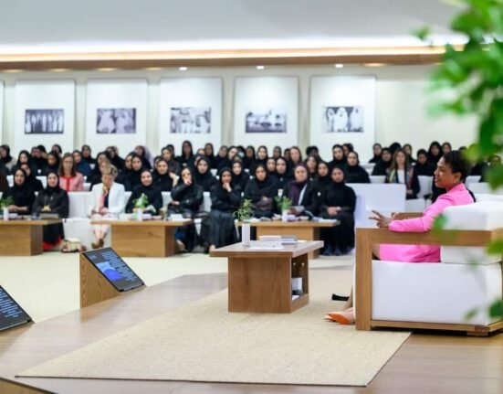 تحت عنوان ” تكنولوجيا متقدمة لمواجهة تحديات التغير المناخي”، ألقت الدكتورة “شارون مكفرسون” مؤسسة شركة “غرين جوبز ماشين” محاضرة فى مؤسسة الباطين الاماراتية