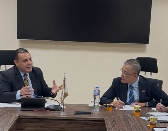 عقد الوزير المفوض التجاري د. عبد العزيز الشريف وكيل أول وزارة الاستثمار والتجارة الخارجية ورئيس التمثيل التجاري اجتماعاً مع Zhao Tao نائب سفير