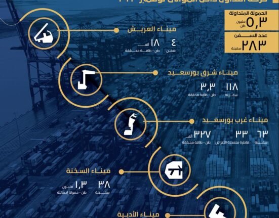 أعلنت المنطقة الاقتصادية لقناة السويس في بيان صادر اليوم أن موانئ شرق وغرب بورسعيد والعريش بالمنطقة الشمالية قد سجلت حركة تداول للسفن خلال