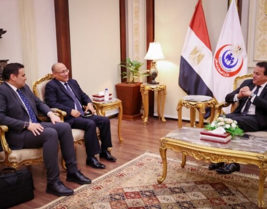 مني السيد استقبل الدكتور خالد عبدالغفار، وزير الصحة والسكان، الدكتور شريف سعد، رئيس قطاع الرعاية الصحية بمجموعة القمرا القابضة القطرية، و مصطفى دبور،