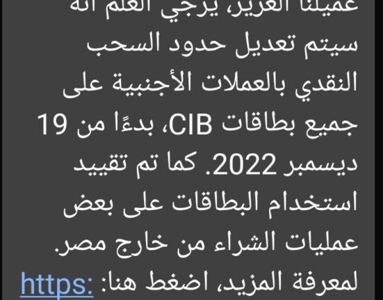 تلقى عملاء البنوك المصرية رسائل تخبرهم بوجود ضوابط جديدة فى حدود عمليات السحب النقدى فى الخارج، وحدود عمليات الشراء الشهرية المسموح بها عل