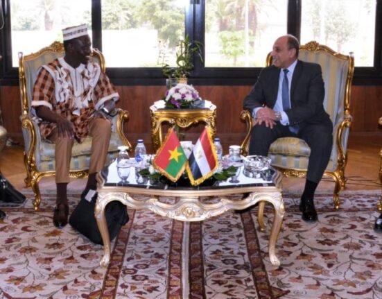 صلاح البجيرمى بحث الفريق محمد عباس حلمي وزير الطيران المدنى، و أنوييرتول رولاند وزير النقل والمواصلات في جمهورية بوركينا فاسو ، التعاون المشترك