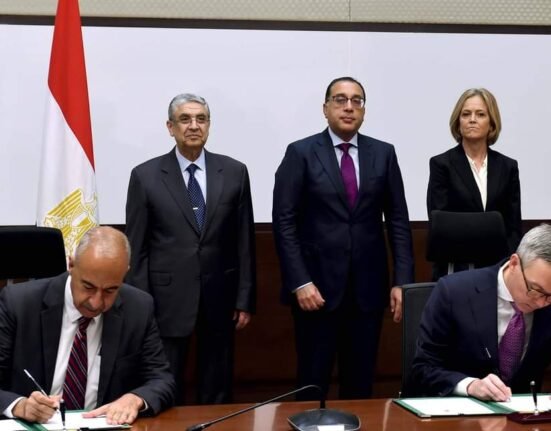تم اليوم التوقيع على اتفاقية لتخصيص قطعة أرض لشركة “سكاتك النرويجية” لإقامة محطة طاقة رياح غرب سوهاج بقدرة 5 جيجاوات باستثمارات 5