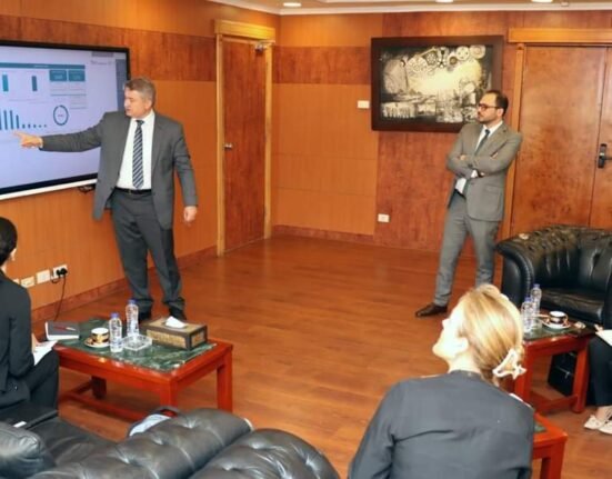 اجتمع المهندس محمد عبد الكريم رئيس الهيئة العامة للتنمية الصناعية مع ممثلى البنك الدولى برئاسة ايلين اولافسين مسئول القطاع الخاص بالبنك لبحث