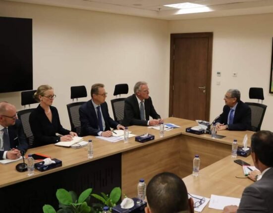 استقبل الدكتور محمد شاكر وزيرالكهرباء والطاقة المتجددة ستيفان فانزيل وكيل وزارة الاتحادية للاقتصاد وحماية المناخ للشئون البرلمانية الالماني ووفد من رجال الاعمال