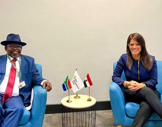 اجتمعت الدكتورة رانيا المشاط، وزيرة التخطيط والتنمية الاقتصادية والتعاون الدولي ومحافظ مصر لدى بنك التنمية الجديد؛ مع إينوك جودونجوانا، وزير المالية ومحافظ جنوب
