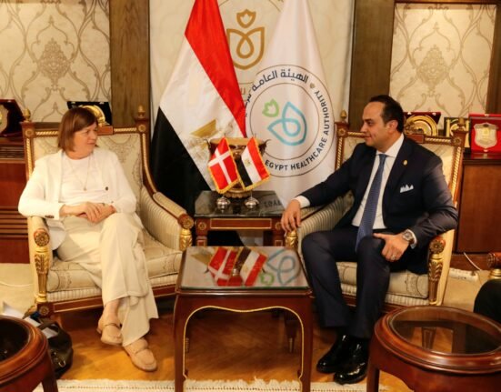 بحث لدكتور أحمد السبكي رئيس هيئة الرعاية الصحية، والمشرف العام على مشروع التأمين الصحي الشامل، مع السفيرة “آنه دورته ريجلسن” سفيرة الدنمارك لدى