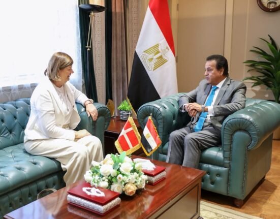 بحث الدكتور خالد عبدالغفار نائب رئيس مجلس الوزراء للتنمية البشرية وزير الصحة والسكان، مع السفيرة «آنه دورته ريجلسن» سفيرة دولة الدنمارك، ووفد شركة
