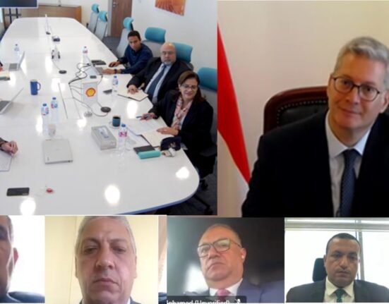 عقد المهندس كريم بدوى وزير البترول والثروة المعدنية اجتماعاً موسعاً عبر تقنية الفيديو كونفرانس مع داليا الجابرى رئيسة شركة شل مصر بحضور قيادات