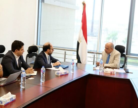 بحث الدكتور محمود عصمت وزير الكهرباء والطاقة المتجددة ، بمقر الوزارة بمدينة العلمين، مع جويدو كلاري الرئيس الإقليمي لبنك الاستثمار الاوروبي والوفد المرافق