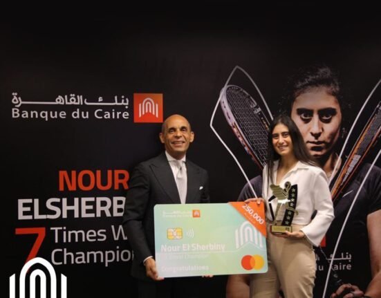 كرّم بنك القاهرة، نور الشربينى بطلة مصر فى الاسكواش والحاصلة مؤخراً على بطولة كأس العالم للمرة السابعة فى تاريخها والخامسة على التوالى، والعودة